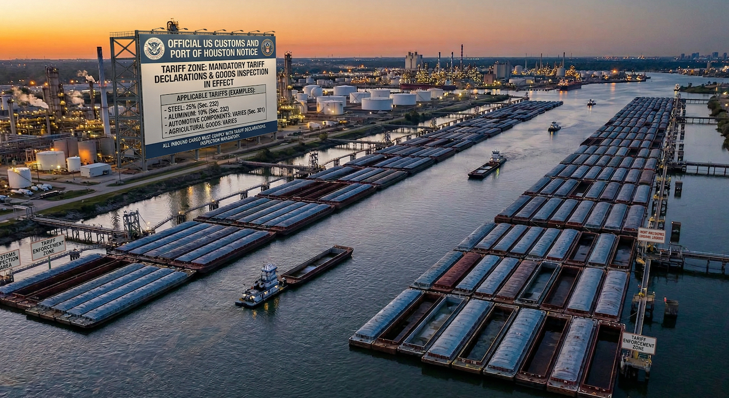 The Houston Ship Channel is navigating the most volatile commodity trade environment in decades. A Supreme Court ruling struck down IEEPA tariffs on February 20, the Strait of Hormuz effectively closed on March 4 after U.S.-Israeli strikes on Iran, and Golden Pass LNG fired its first train on March 30 — all within six weeks. For terminal operators, commodity traders, and industrial investors along the Channel, these concurrent shocks are rewriting the playbook on trade flows, margins, and infrastructure value.