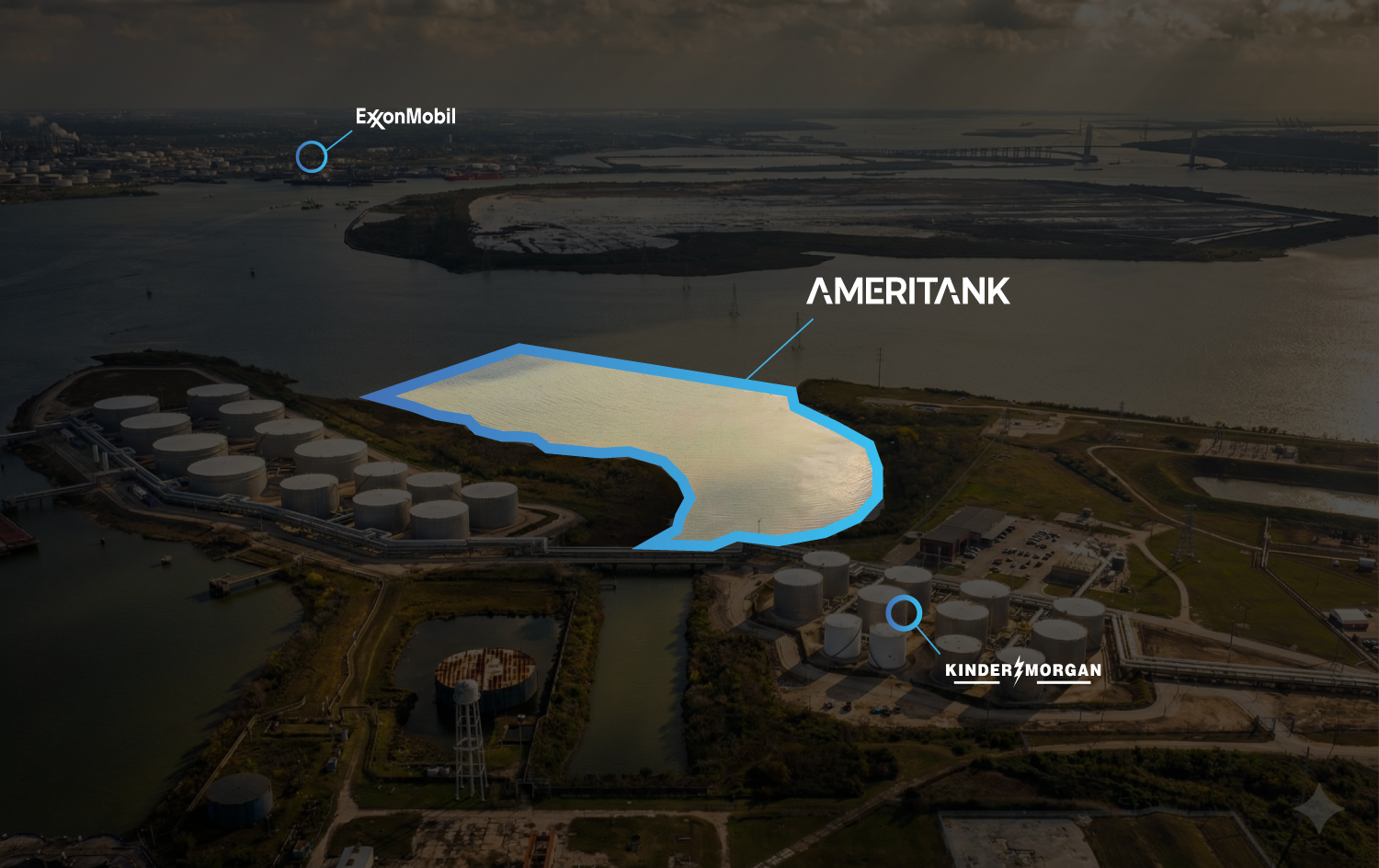 Ameritank is developing a purpose-built barge fleeting facility at our 147-acre site in La Porte, Texas — with direct access to the Houston Ship Channel. Our planned facility will accommodate up to 66 barges via a 150-foot-wide fleeting channel, supported by 16 mooring dolphins and optimized water depths for both river barges and chemical barges.
