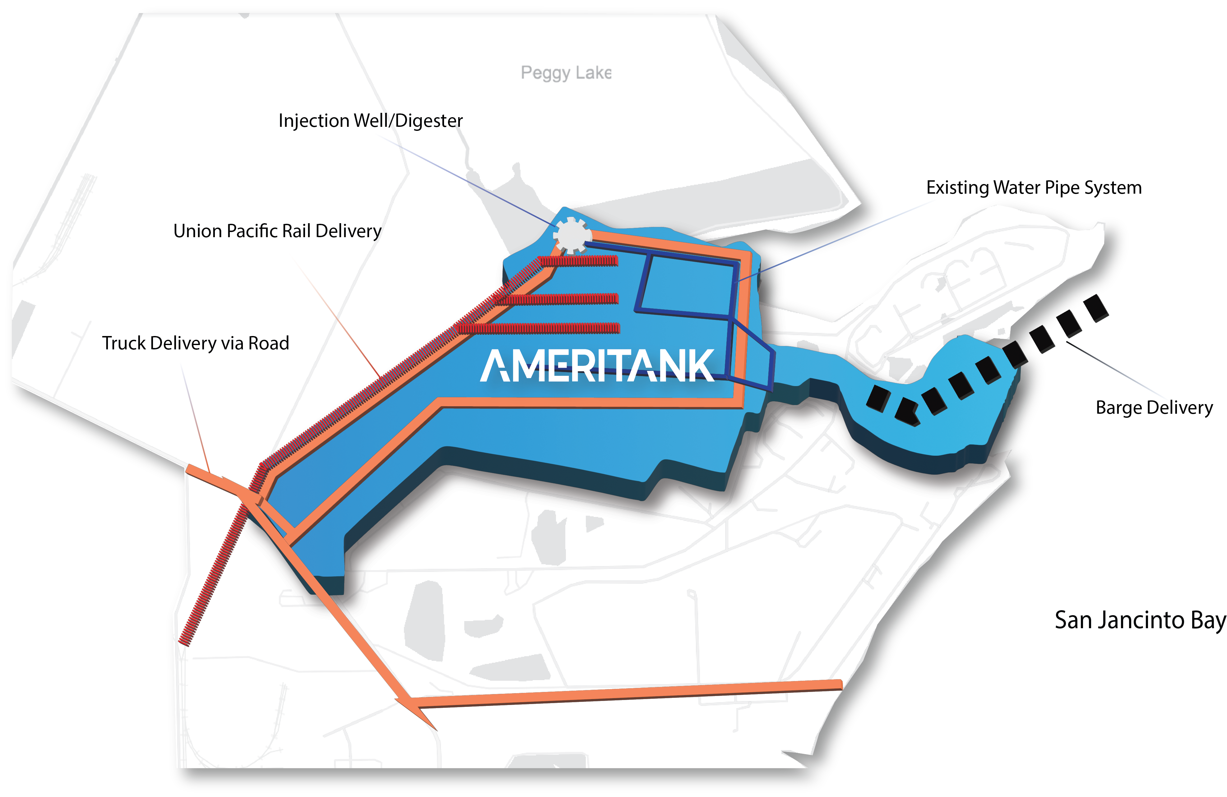 Ameritank is developing a state-of-the-art Class I Non-Hazardous Injection Well facility at our 147-acre site in La Porte, Texas. Strategically positioned on the Houston Ship Channel — surrounded by ExxonMobil, Kinder Morgan, Chevron Phillips, and the largest petrochemical complex in the Western Hemisphere — our facility will provide safe, efficient, and fully permitted disposal solutions for industrial liquid waste, E&P waste, and landfill leachate.